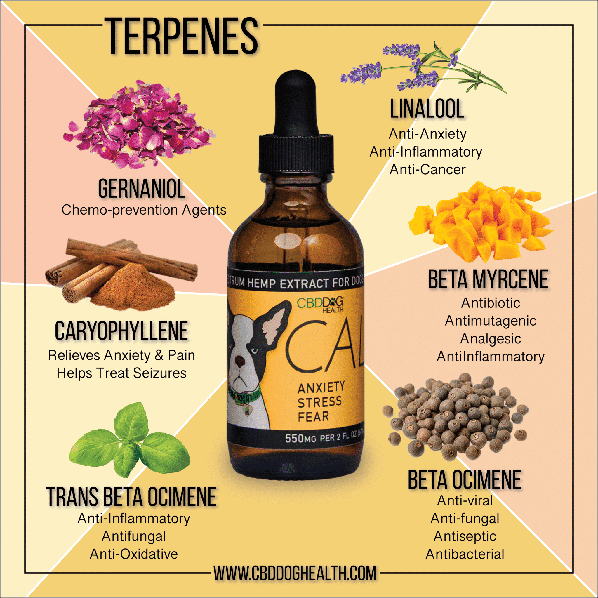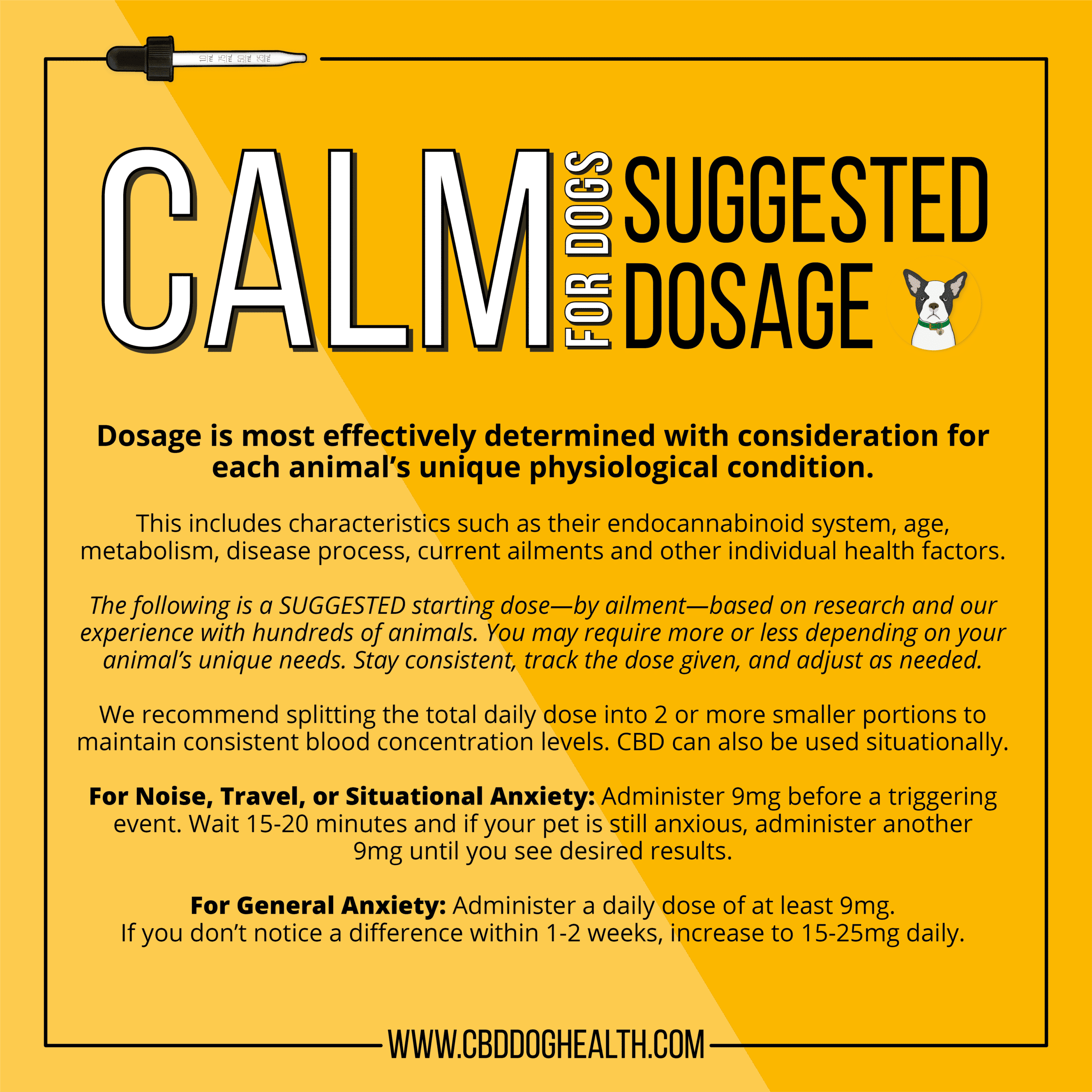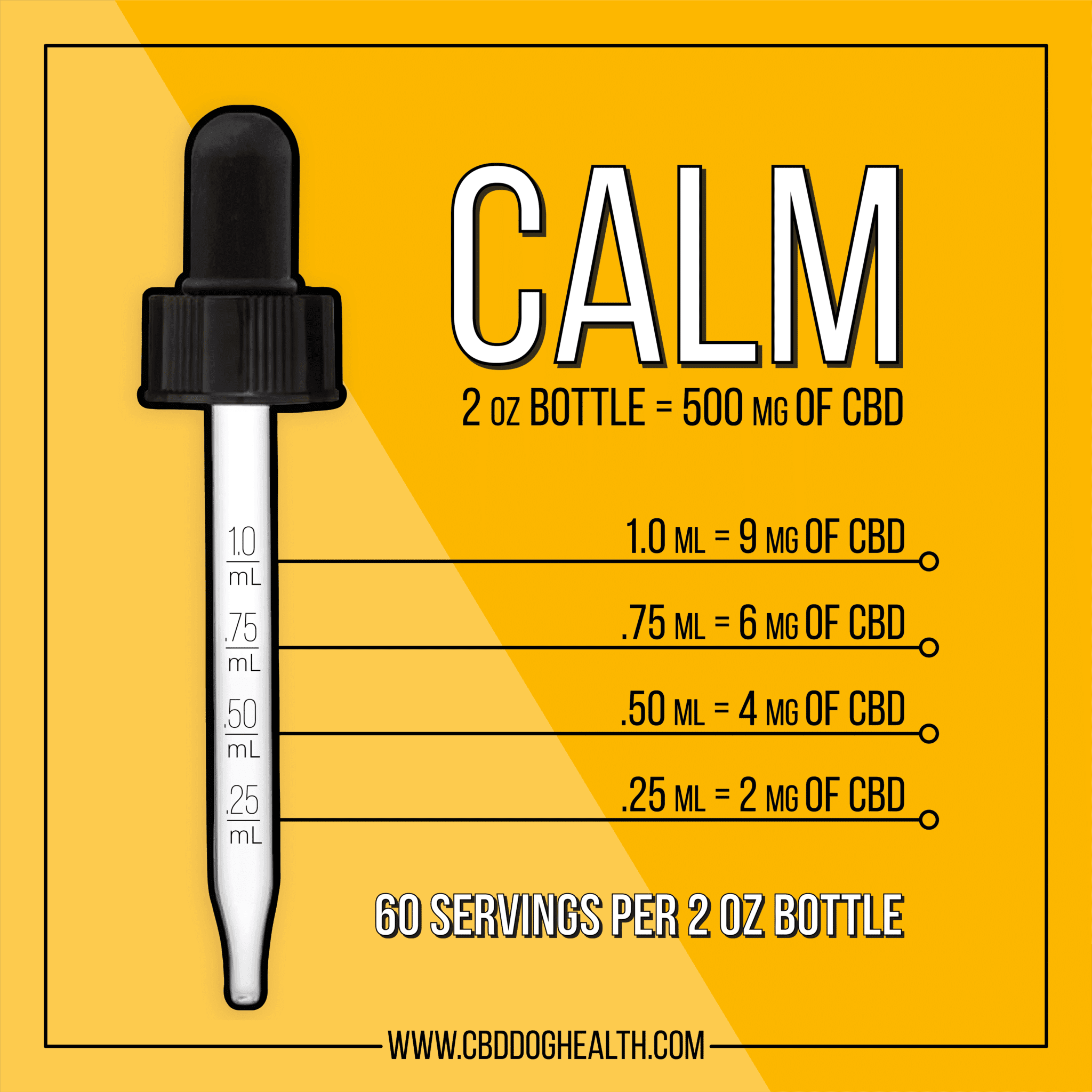 1 ml dropper contains at least 9 mg of CBD for dogs anxiety, stress and fear